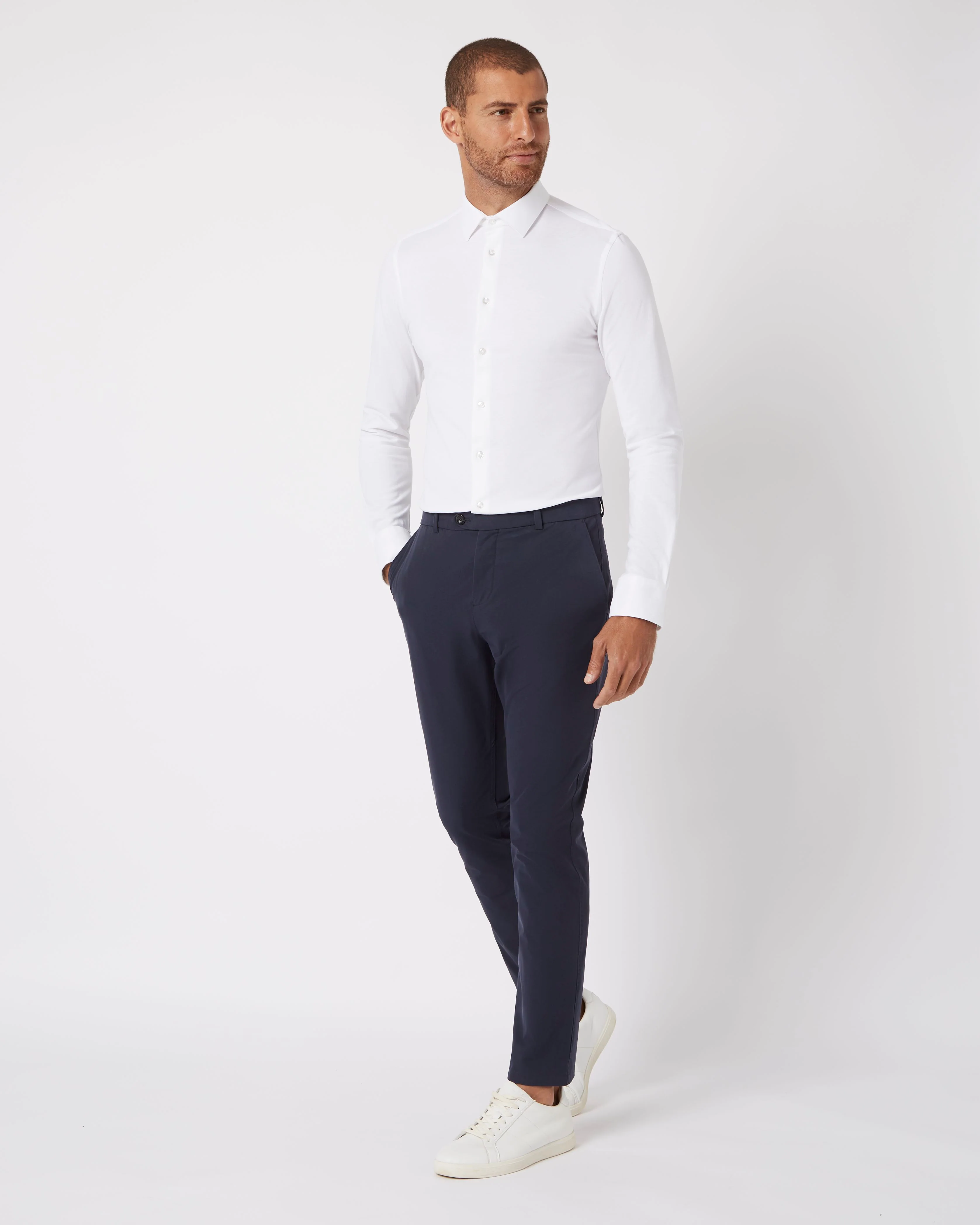 The knitted fabric structure makes this shirt ultra comfortable & stretchy, while repelling stains & odour. The sealed AscoliteĀ® button thread ensures youāll never lose a button. Originally developed in collaboration with Kenneth Perez.